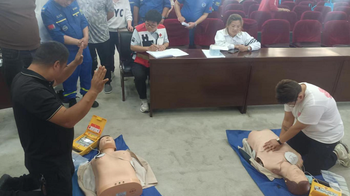 此次培训采取课堂讲授与实操练习相结合的培训形式。培训期间,红十字救护师资为队员们讲解了红十字运动知识及现场救护新概念,向大家详细讲解通气、止血、包扎、骨折固定、搬运五大创伤救护技术以及心肺复苏、气道异物梗阻及AED的使用方法。